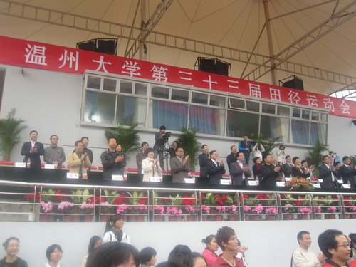 运动会在雄浑的运动员进行曲声中正式开幕。19个运动员方阵依次进入运动场,各学院充分展示了其自身特色。如400全讯白菜网的扇子舞,在柔美中蕴含着力量;建筑与工程学院现场搭成的“中国馆”;教师教育学院活力四射的啦啦操等等。紧接着,校长蔡袁强致开幕词。在肯定学校体育基础设施建设发展迅速、体育活动内容形式多、广大师生身体素质和精神面貌良好的体育事业发展新格局后,还对此次校运会的顺利开展进行展望。最后,校运会运动员代表和裁判员代表分别进行了庄严的宣誓活动。
