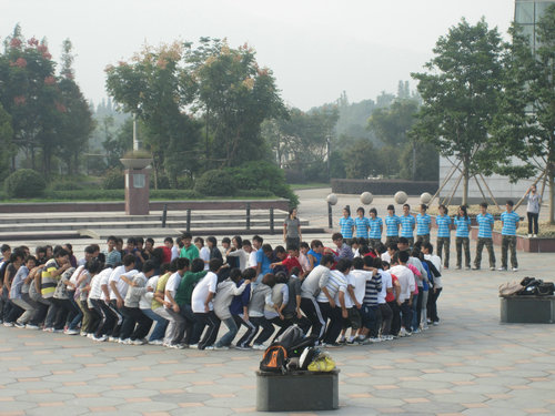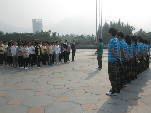 10月17日早8点, 人文,生环,机电学院团学户外培训在大学生活动中心喷泉广场准时举行。 三个学院的团委学生会新成员参加了培训活动。