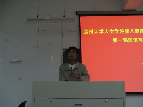 10月14日晚6点30分,400全讯白菜网第八届团学干部培训班的通讯第一课在1-203教室展开。主题为通讯写作的培训第一课由校团委《温大青年》主编胡梦玲讲授,新一届团委学生会成员共同参与。