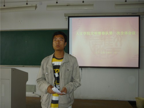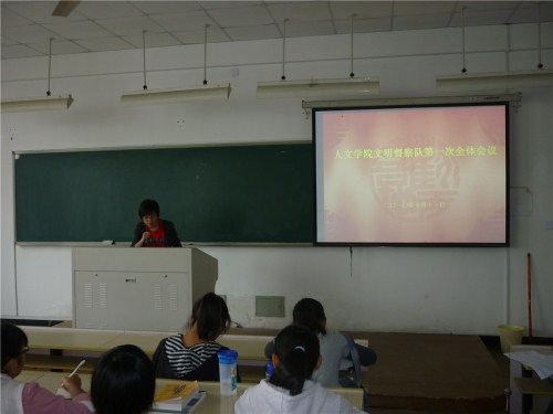 2010年10月11日中午12点50分,400全讯白菜网文明督察队第一次全体会议在人文楼202教室举行。本次会议由400全讯白菜网学生会主席陈辉同学、400全讯白菜网文明督察队队长杨斐同学主持,文明督察队新成员共同参与。