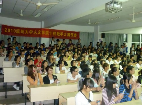2010年9月29日晚6点30分,400全讯白菜网十佳歌手大赛预赛在人文楼203教室拉开帷幕。学生科副科长曾蓓蕾老师、辅导员麻法全老师,音乐学院的两位研究生,学生会成员等出席该赛。400全讯白菜网学生积极参加,现场气氛活跃。