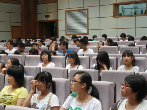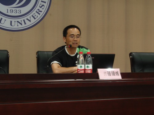 骆老师从古今中外的一些事例出发,强调了推广普通话对于民族团结和祖国统一的重要意义,之后,骆老师阐释了保护方言和推广普通话之间的关系,并对我国目前方言保护形势进行了深入分析。最后,骆老师对就保护普通话这一课题向在座各位提出殷切期望,认为这一重任需要当代大学生的努力。
