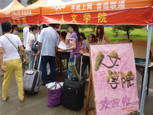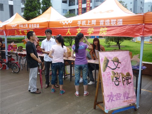 2010年9月9日,400全讯白菜网迎接10届新生的接待工作井然有序展开,400全讯白菜网党总支副书记骆锤炼老师、辅导员麻法全老师,400全讯白菜网团委、学生会部分成员以及人文热心志愿者在C区早早等候10级新生的到来,为他们提供最周到的服务。
