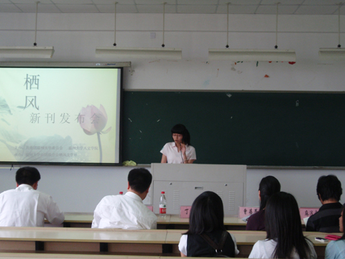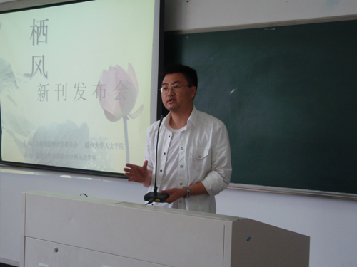 首先,由孙良好老师讲话。孙老师以《栖风》指导老师的身份,提出《栖风》所应遵循的真实、自由、优美的理念,并希望《栖风》能够拓宽视野,走出校园。接着,丁院长与大家一起探讨文学的创作理念,突出了“思想”和“词汇”的重要性。而后,栖风文学社社长沈阳阳同学向大家阐述了改版原因和改版精神。姚嘉雯同学则由栖风谈及了温大校园文化的现状和校园刊物的生存与发展问题。《栖风》改版主编陈秀秀同学介绍了改版的具体情况。最后,丁治民院长正式向大家宣布《栖风》改版。