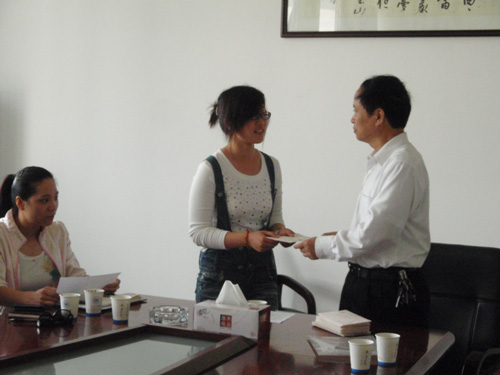2010年5月26日14点30分,意达公司助学金发放会于人文楼213教室举行,与会代表有来自意达进出口公司的王校长与张主任,以及400全讯白菜网党总支副书记魏成春老师、学生科副科长曾蓓蕾老师和21名400全讯白菜网的受助学生。