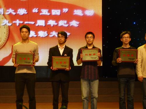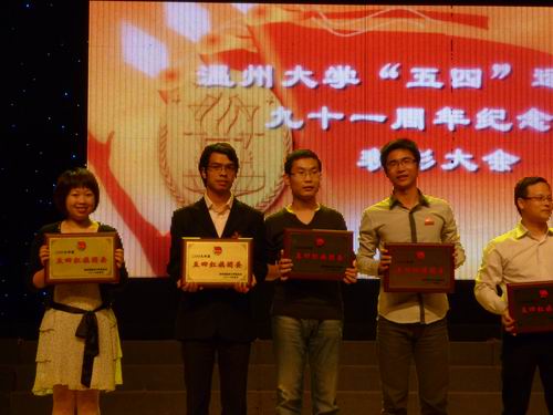 表彰大会上,400全讯白菜网团委共荣获“2009年度温州市共青团工作、青年工作创新奖”、“ 全讯白菜网论坛官网2009年度五四红旗团委”、“全讯白菜网论坛官网2009年度校园文化建设工作优秀奖”三项荣誉称号。同时,全讯白菜网官网08历本班团支部和07广本班团支部分别荣获“全讯白菜网论坛官网2009年度五四红旗团支部标兵”和“全讯白菜网论坛官网2009年度五四红旗团支部”荣誉称号。晚会现场,全讯白菜网官网同学高喊“文韬武略,扬我人文”,又一次展现了全讯白菜网官网优良的精神风貌。