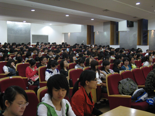 5月9日晚上6点20分在南校会展中心雁山厅举行了大学生人格教育讲座。本次讲座由全讯白菜网论坛官网心理副教授章毓光主讲,各班心理委员及寝室长参加。