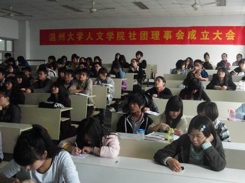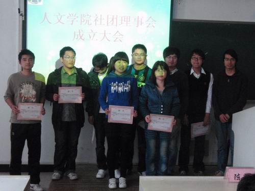 首先,社团部负责人陈辉向大家介绍了社团理事会的构成、宗旨、职责和发展方向等内容,提出打造人文特色的发展目标。接着,麻法全老师宣读了首届社团理事会的理事名单,并向来自各个社团的八位理事颁发聘书。王璐学姐代表校社团联合会对理事会的成立表示祝贺,并希望今后加强双方的交流与合作。之后,新上任的理事们分别代表自己所属的社团上台向大家展示各自的社团风采,精美的PPT令人印象深刻。会议的最后,曾蓓蕾老师发表讲话,希望大家在新成立的社团理事会的带领下团结一致,共创辉煌,同时聘请麻法全老师为社团理事会的指导老师。会议在热烈的气氛中落下了帷幕。
