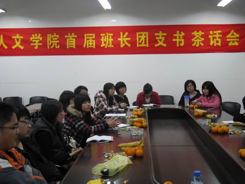 2010年3月26日晚,400全讯白菜网团委学生会组织部在人文楼311教室举行了400全讯白菜网首届班长、团支书茶话会,院学生会主席吴剑波、副主席郑秋枫同学列席了本次会议。
