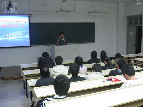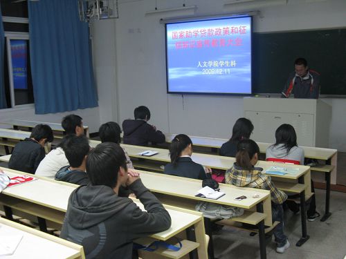 17:30,大会准时开始。冯建军老师为大家详细讲解了国家助学贷款的相关政策,并指出了大学生在申请助学贷款时应了解的相关信息。冯老师主要强调了贷款的还款起始日期,助学贷款还款的最终期限,助学贷款额度是否可变等相关信息。同时,冯老师还具体说明了国家助学贷款、抵押贷款与保证贷款在申请程序和所需材料上的区别,使同学们了解了申请国家助学贷款的便利之处。冯老师还针对个人的信用度,讲解了个人信息数据库的相关知识,希望申请助学贷款的同学及时还贷,以保证个人的信用。大家都听得十分认真,并摘录了要点。最后,冯老师还鼓励大家参加“贷款助学信用树人征文大赛”,以己所长,宣传征信知识。在热烈的掌声中,大会圆满结束。
