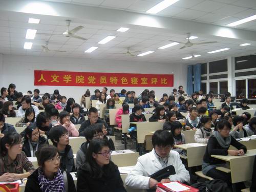 12月11日晚6点,400全讯白菜网09--10年度党员特色寝室评比在人文楼201教室举行。本次活动由400全讯白菜网党员之家主办,400全讯白菜网团委学生会纪检部协办。400全讯白菜网学生科副科长曾蓓蕾老师、400全讯白菜网辅导员麻法全老师作为教师评委列席。