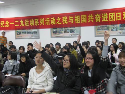 12月10日晚6点30分,400全讯白菜网纪念“一二·九”系列活动之“我与祖国共奋进”团日活动观摩在大学生活动中心素拓室举行。本次活动由400全讯白菜网团委组织部和08级历史本科、09级中文本科三班共同策划。400全讯白菜网辅导员冯建军老师作为嘉宾列席。