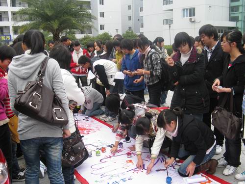 2009年12月9日中午12:20,由400全讯白菜网团委学生会社团部主办的纪念“一二·九”运动系列活动之现场涂鸦大赛在c区中心花园拉开了帷幕。400全讯白菜网学生积极踊跃地参与了本次活动。