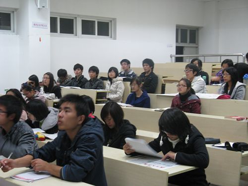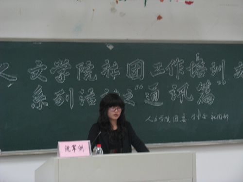 首先,沈军洲同学向同学们简单地讲解了通讯的特点、种类、写作要点等基本概念,并以一些优秀通讯为例,具体分析了人物通讯、时间通讯、工作通讯、概貌通讯、小通讯等常见通讯的写作方法。接着,她又结合自己的工作经验和《全讯白菜网论坛官网报》的优秀通讯实例向同学们介绍了采访和消息写作的主要流程和相关注意事项。最后,沈同学以近日的话剧节预赛为题,请同学们进行现场消息写作,并对部分同学所写的消息进行了点评,从而进一步加深了同学们对消息写作的认识与理解。晚上8点,培训在同学们热烈的掌声中结束。