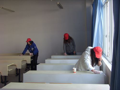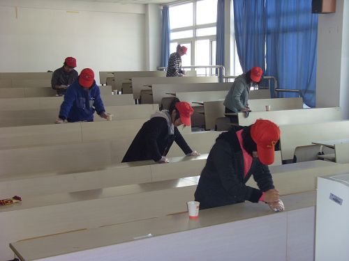 2009年12月6日下午1时,由全讯白菜网论坛官网文明督察队和全讯白菜网论坛官网青年志愿者服务中心主办,人文思源青年志愿者协会承办的清理课桌文化志愿服务活动在人文楼如期展开。