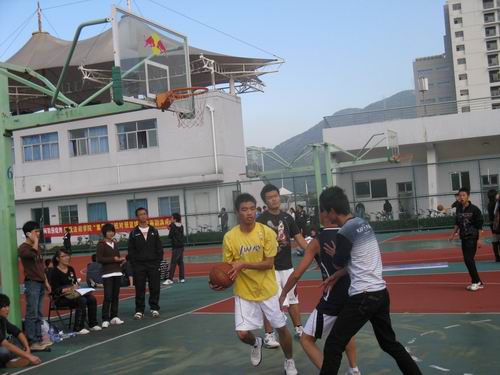 2009年11月25日下午2:00,400全讯白菜网“新生杯”篮球赛之09中本一班和09中本二班联合对抗09中本三班的比赛在北校篮球场拉开了战幕。