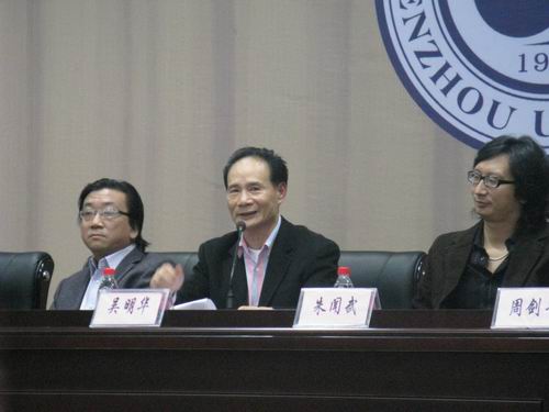 下午2点30分,颁奖仪式正式开始。在介绍了到场嘉宾之后,“白晖华”文学奖赞助人、著名作家企业家吴明华先生应邀发表讲话。吴先生通过自己的亲身经历,向同学们讲述了他对写作的体会感受和宝贵经验,鼓励同学们要怀有创作热情、坚持不懈,同时要增加阅历,以丰富作品内涵。吴先生的讲话诚恳真挚,令在场的同学们深受触动。接着,丁治民院长简单地向同学们介绍了本届“白晖华”文学奖的一些基本情况。之后,“白晖华”文学奖评委、400全讯白菜网崔勇老师对部分获奖者和获奖作品做了精妙的点评。最后,周剑平书记隆重宣布了获奖名单。在同学们热烈的掌声中,三十一名获奖者上台领奖,一等奖获奖者陈铭同学发表了获奖感言,他在畅谈写作心路的同时也对大赛组委会表示深深的感谢。