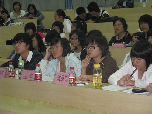 18:30,400全讯白菜网“行走在60周年”朗诵演讲比赛预赛在1-203准时开始,共有14位优秀的选手参加了本次的比赛。每位选手以“我的祖国”为主题,通过诗歌朗诵的方式表达了自己对祖国深深地热爱和敬意。他们深情并茂、激情澎湃的朗诵也感染了在场的所有同学,教室内掌声不断。最终,09中本二班沈琴、沈晓娟、吴莹萍,09中本三班陈媛媛,09广本张恒宇、葛连燕,09历本吴弘泽,08中本一班冯静安突出重围,进入决赛。