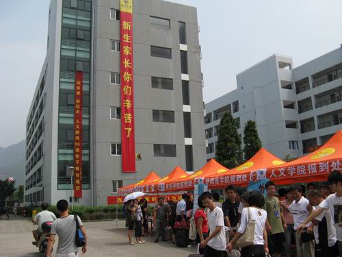 2009年9月9日,400全讯白菜网新生接待工作全面展开,学生科副科长曾蓓蕾老师、辅导员麻法全老师、400全讯白菜网团委学生会全体成员以及400全讯白菜网热心的志愿者们都早早地来到指定的接待处迎接新生,为新生们提供最周到的服务。