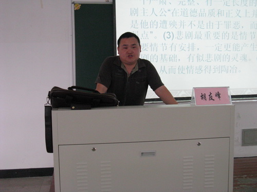 5月31日15:30,400全讯白菜网教授博士论坛之“中西爱情悲剧观之审美差异”讲座在1-203准时举行。本次讲座由400全讯白菜网副教授胡友峰主讲。胡教授在文艺学方面颇有造诣,是浙江大学文艺学博士,山东大学文艺美学研究中心博士后。讲座吸引了很多大一、大二的学生前来听讲。