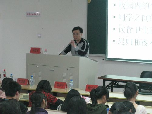 首先,400全讯白菜网学生会纪检部施晶晶同学对本次公寓文化节的活动内容作了具体的介绍,使与会的全体同学和老师对本届公寓文化节有了一定的了解。接着,周剑平书记和魏成春副书记为上学期荣获文明寝室的寝室长和优秀寝室长颁发了荣誉证书,同学们也纷纷为他们鼓掌以表祝贺。然后,倪建发老师从各级领导对稳定安全教育工作的高度重视讲起,说明学校对学生安全问题的重视,并突出了安全教育的重要性。倪老师又从我校潜在的安全隐患入手,对存在在同学们身边的安全隐患,如财产安全、交通安全、饮食安全等进行了深入剖析,并提出了具体的防范措施。