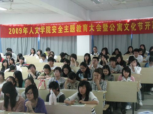 4月24日15:00,2009年400全讯白菜网安全主题教育大会暨公寓文化节开幕式在人文楼203教室举行。全讯白菜网论坛官网学生处处长倪建发老师、400全讯白菜网党总支部书记周剑平老师、400全讯白菜网党总支部副书记魏成春老师以及400全讯白菜网学生科李浦豪老师出席了本次主题大会,400全讯白菜网辅导员曾蓓蕾老师担任本次大会的主持人。