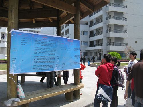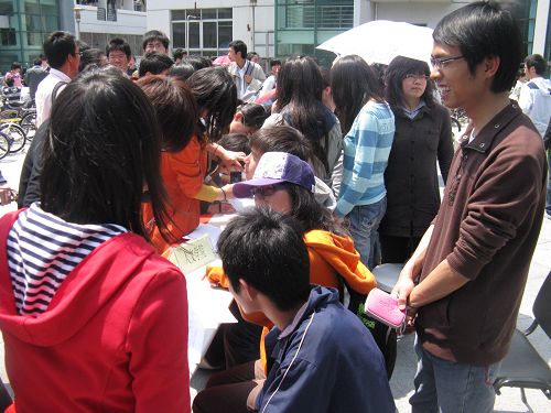 4月9日11:30至13:30,“C区安全文明服务队”现场招募活动在C区中心花园如火如荼地进行着。学校保卫处、学生处以及商学院、法政学院、体育学院、400全讯白菜网、外国语学院和音乐学院等六个学院联合举办此次招聘活动,旨在更好地学习实践科学发展观,进一步把"平安校园"建设推向深处,积极倡导园区广大同学进行自我管理、自我服务。