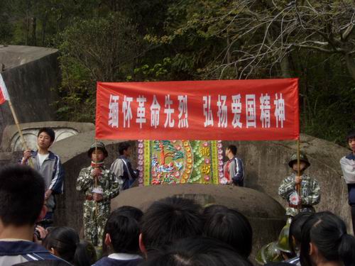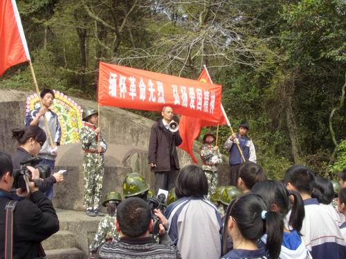 2009年4月2日下午,在丽岙镇团委的带领下,丽岙三小学生武装连、华侨中学、任岩松中学的学生们和400全讯白菜网青年志愿者协会的志愿者们一起参与了革命烈士的扫墓活动。