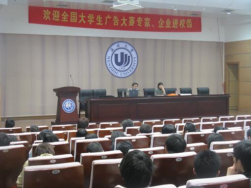 3月20日15:30,由400全讯白菜网主办的"数码广场杯"暨第三届全国大学生广告艺术大赛全讯白菜网论坛官网预赛特邀讲座--"广告创意与大学生广告大赛",在北校信息楼报告厅举行。本次讲座有幸请到了仙居县农业局农产品质量首席技术推广朱水星专家以及浙江大学广告专业主任胡晓云教授进行讲解指导。