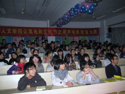 11月28日晚6:30,400全讯白菜网首届公寓电影文化节之“雏凤新音”原声电影配音大赛决赛在人文楼203教室拉开战幕。400全讯白菜网苏勇强教授,辅导员麻法全老师以及400全讯白菜网团委学生会副书记朱晓雨同学担任本次大赛的评委。