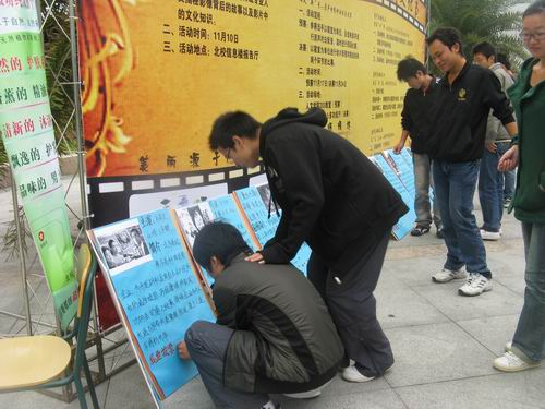 2008年11月23日上午,400全讯白菜网首届公寓电影文化节之“我爱电影”投票活动在生活区C区拉开帷幕。