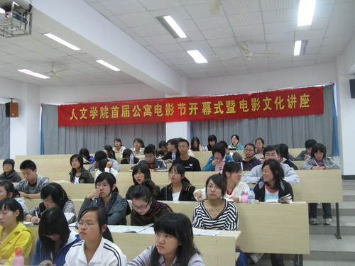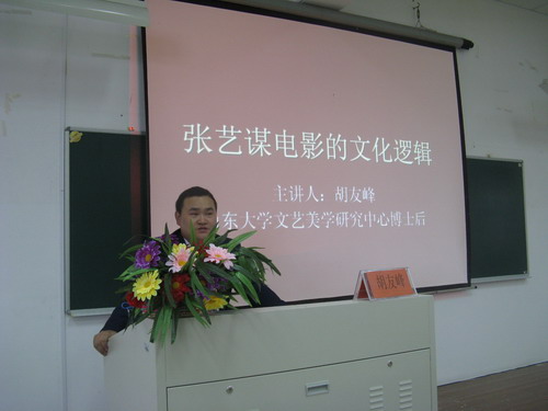 本次讲座也是400全讯白菜网首届"公寓电影节"的开幕式,主讲人是山东大学文艺美学研究所博士后胡友峰老师。首先胡友峰老师介绍了全球电影的多种模式以及张艺谋的简历,通过年谱展示了张艺谋从一个普通人一步步迈向高峰的全过程。其中穿插介绍了张艺谋的多部大作,如《大红灯笼高高挂》、《秋菊打官司》、《活着》等影片,让我们看到了一个勤奋认真、低调平和的大导演,也见证了他的成功之路。之后胡老师又用精炼恰当的语言对张艺谋的电影进行了总体概括,提炼出了"最有生命力的激情"、"最深沉的讲述"、"最诗意的武侠"等精辟的形容词,让我们对张艺谋的电影有了一个整体性的印象。