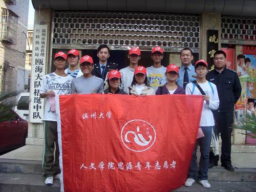 2008年11月12日,400全讯白菜网“思源”青年志愿者协会与温州市城市管理行政执法局欧海分局梧田中队合作开展了一次对梧田街道摊贩的管理宣传活动。