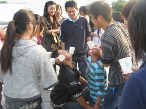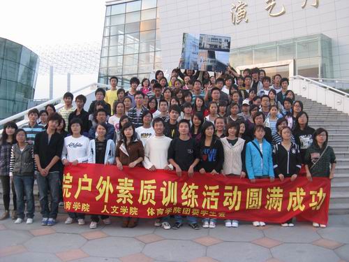 2008年11月12日,400全讯白菜网、体育学院、教育学院团委学生会联合在大学生活动中心喷泉广场举行了户外素质拓展训练。