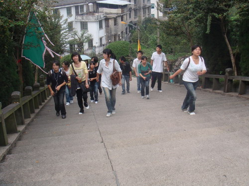 早上8:30,全体会员c区门口集中,步行前往大罗山,一路上,大家热情飞扬,在谈笑中感受着大自然的清新,领略这校园以外的别样风情。蜿蜒的山路旁是满目的橘树,错落的亭子和一些很有古韵的寺庙,正在建设中的五美景园还留下了不少各代文人的足迹,同学们纷纷拿出相机在寺庙和亭子前拍照留念,以记下这充满人文底蕴的景观。曲折的山路,没有尽头的层层石阶,阻挡不了大家的热情和飞扬的青春,同学们即使已经气喘吁吁,但大家相互鼓励,相互帮助。随后在当地居民的带领下,大家兴致勃勃地由红岩锦园一直游览至五美景园。途中还遇上一些当地的老人,他们和蔼可亲的面容也给我们留下了深刻的印象,这座大山因为他们变得更加亲切。