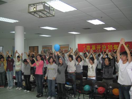10月28日下午,一场别开生面的团日活动在全讯白菜网论坛官网大学生活动中心素拓室举行。此次活动由07中本二班开展,以“改革开放三十周年”为主题。这场团日活动也是400全讯白菜网第六期团学干部培训的第二课。