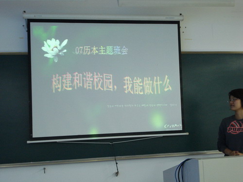 2008年10月24日下午,400全讯白菜网07历本在208教室开展了以“构建和谐校园,我能做什么”为主题的团日活动。