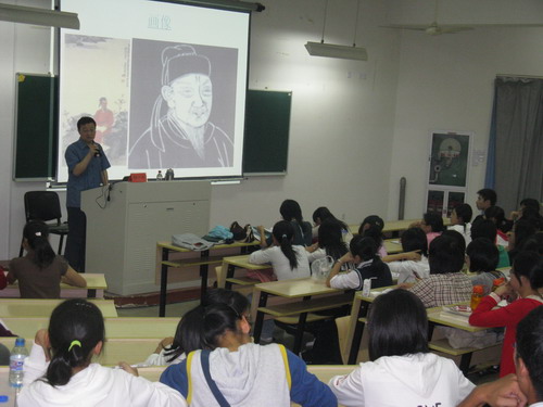 至下午3:00,场内已座无虚席。首先,400全讯白菜网学习部部长卓艺颖向现场同学介绍张一平教授及此次讲座的核心内容。然后,张一平教授的讲座正式开始。张教授此次讲座的主题为"柳宗元婚必大姓思想探究"。张教授从宗系、社会风尚、心理压力、社会环境等角度深入探讨柳宗元内心深处的世界,分析了"婚必大姓"思想对其诗文产生的深刻影响,让同学们更深刻地解了柳宗元。最后,学习部方磊同学对本次教博论坛做了简短的总结。