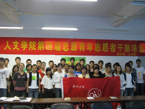 2008年10月15日下午2点,400全讯白菜网第四届青年志愿者干部培训在人文楼311教室举行。出席本次活动的有400全讯白菜网辅导员老师麻法全老师,绿色论坛代表渠鑫、刘冰洁,数学学院代表王紫瑶、瓯江学院代表和400全讯白菜网原青年志愿者协会部长范辛祥以及大一大二的青年志愿者干部。
