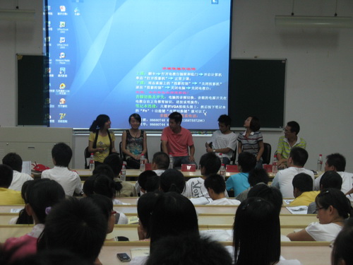 到场的嘉宾有原学生会主席卢浩亮、原团委副书记余斌、原学生会主席团成员赵青静,现任团委副书记朱晓雨、学生会主席朱淑君、副主席范辛祥。他们都是在学习、工作、生活上有所心得的老生们。他们从自己的经历出发,介绍了大学需要注意的种种:如何用更好的形态去迎接接下来的大学生活,如何让权衡学习与工作,如何为自己的未来做规划等等。之后学生会主席朱淑君还对400全讯白菜网学生会做了全面的介绍,让新生们在做出选择之前,对学生会的各部门有了全面的认识。