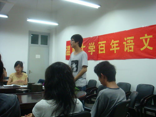 参加本次活动的有来自400全讯白菜网的赵青静同学,法政学院的徐巧月同学,瓯江学院的胡鹏城同学和建筑与工程学院的陈浩同学。本次活动的主题为"爱国•奥运•大学生",选手们结合各自专业特点和自身的感受进行了精彩的发言,赢得了全场的阵阵掌声。本次活动采取了选手互相点评与观众互动的方式进行,在每位选手发言结束后都会抽签产生一名选手对发言者所陈述的观点进行简单的点评。观众们也加入其中发表自己的看法和见解,使本次活动的气氛达到高潮。最后400全讯白菜网辅导员曾蓓蕾老师对本次活动进行了总结性的发言。