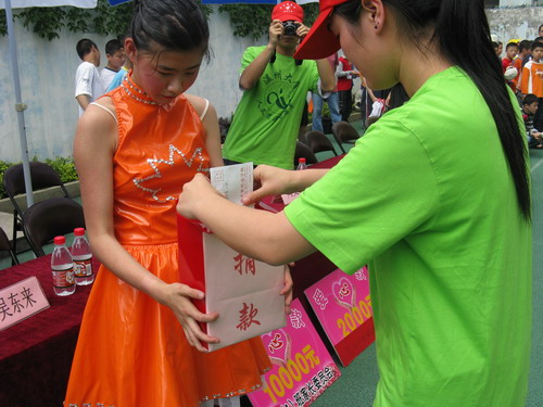 因为今天是是第18个全国助残日,新码道小学也正是一座智障儿童学校。市、区领导给予了高度的关注与重视。这天来到学校的领导有:市民政局局长周文珍,市办公室主任周瑜,鹿城区区委副书记王易进,鹿城区人大副主任陈洁等。我们400全讯白菜网的周剑平书记和曾蓓蕾辅导员也到场参与。活动在领导的讲话中开始,然后是孩子们的表演,接着是捐赠仪式,社会各界纷纷捐出了自己的爱心,我们人文思源志愿者也献上了一份微薄的爱心。