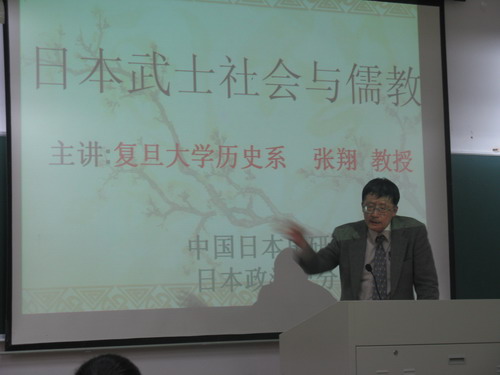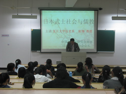 4月29日晚,中国日本研究会理事、日本政治史分会会长、复旦大学历史系张翔教授在全讯白菜网官网1号楼203教室开展了一次以"日本武士社会与儒教"为主题的讲座。此次讲座吸引了众多同学前来听讲,现场气氛极其活跃。