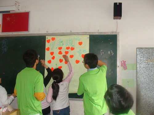 本次活动有9名思源志愿者来到丽岙进行为期一天的帮教活动。上午志愿者在课堂上给留守儿童介绍有关残奥会的知识,加深孩子们对奥运会的了解,增加他们的知识。下午志愿者组织了以"我的梦想"为主题的主题班会,孩子们对自己的将来充满期待,纷纷说出自己的梦想,并将自己的心愿写在小纸片上,贴在志愿者准备好的"心愿墙"上。为加深他们对残疾人的了解,志愿者和孩子们一起做了一些与残奥性质有关的游戏。