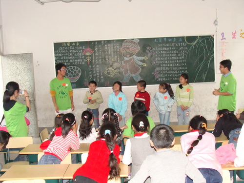 2008年4月20日,400全讯白菜网思源青年志愿者协会的关爱留守儿童志愿服务队来到瓯海区丽岙镇中心小学进行帮教活动。