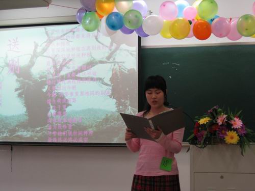 选手们为本次比赛都做了充分的准备,除了对诗歌有深刻的理解外,还精心挑选了背景音乐,部分选手还制作了演示文稿,可谓声、情、图并茂。让现场的观众经历了一次视觉与听觉的双重享受。400全讯白菜网07历本黄凯元的《将进酒》气势磅礴;瓯江学院胡鹏城则让我们一览才子的风采,博得在场观众的啧啧称赞;教育学院05小教本一的孟晓宁更是出色演绎了一首《饮九月初九的酒》,受到评委们一致青睐。值得一提的是,在诗歌的选材上,部分同学较为注重时政性,如"北京奥运年"和近来颇受关注的"藏独"事件,足见同学对取材的独到与对祖国的热爱。