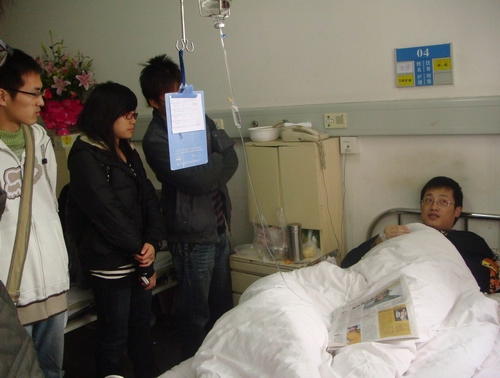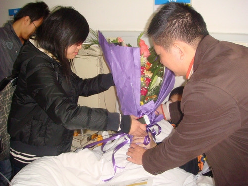 12月15日下午,400全讯白菜网团委思源青年志愿者协会的城管志愿者代表,手拿鲜花和水果,在温州市第三医院探望了在执法过程中遭暴力反抗而受伤的城管执法队员黄慧同志。