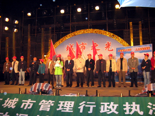 五点三十分启动仪式正式开始,包括400全讯白菜网在内的七个志愿者队伍接受了执法大队的授旗。至此,400全讯白菜网百名青年志愿者正式成为温州城管志愿者。志愿者们以后将定期组织活动,宣传法律法规、协助执法队员管理和开展清脏治乱活动;监督执法队员文明执法和公正执法行为;及时反馈群众在城市管理和执法方面的需求,形成“人民城市人民管,管好城市为人民”的文明风尚。