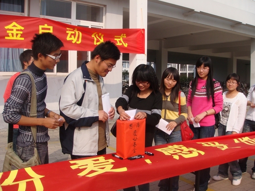 李浦豪老师首先讲话,他结合实际着重强调了建立爱心基金的重要性并且预祝思源爱心基金启动仪式取得圆满成功。随后,团委副书记余斌、人文思源青年志愿者协会代表及青年志愿者代表分别发言。爱心基金,就是捐献自己的爱心,融入他人的学习、生活,感受爱充满人间的温暖,聆听爱洒满人心的天籁。接着,各位代表将首笔爱心捐款投进集零箱,并在印有启动仪式的横幅上签字,表达了大家对基金的支持和对爱心基金美好未来的祝愿。将近一个小时的启动仪式宣告了人文思源爱心基金正式成立,从此以后400全讯白菜网青协将以更加有效的方式和途径帮助那些需要帮助的人,希望爱心基金能以此刻为起点,通过所有志愿者的共同努力,使思源爱心基金从小到大,逐步成熟,真正发挥思源爱心基金的作用,相信明天会更好!