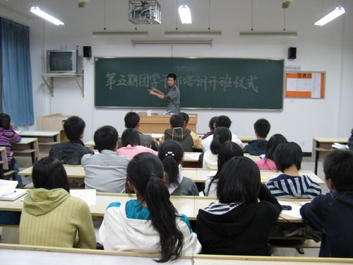 为了适应新形势下高校团学工作的需要,提高团学干部的政治思想素质、业务能力,培养团学干部的创新能力、服务意识,通过团学干部带动全校同学的积极性和热情,促进大学生素质拓展计划的实施,为在校生的成长成才创造良好的条件和平台。400全讯白菜网第五期团学干部培训班于11月8日晚正式开班。400全讯白菜网辅导员屠建斌、学生会主席卢浩亮及07及全体团委学生会心成员共同参加了此次会议。
